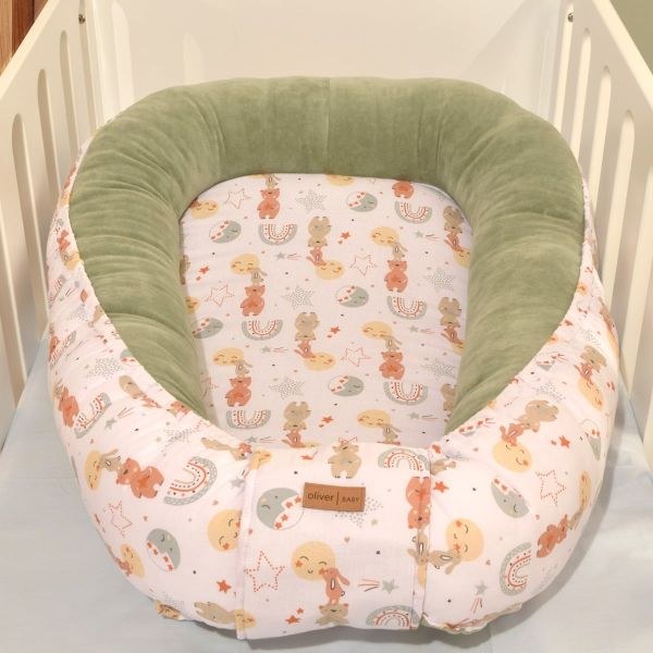 Φωλιά Διπλής όψης Des.410  Oliver Baby Eμπριμε 100% Βαμβάκι / Βελουτέ 80% βαμβάκι & 20% πολυεστερ- 75x110 ανοικτή διάσταση με αφαιρούμενο στρώμα. Συσκευασία σακούλα PVC . Eλληνικής ραφής