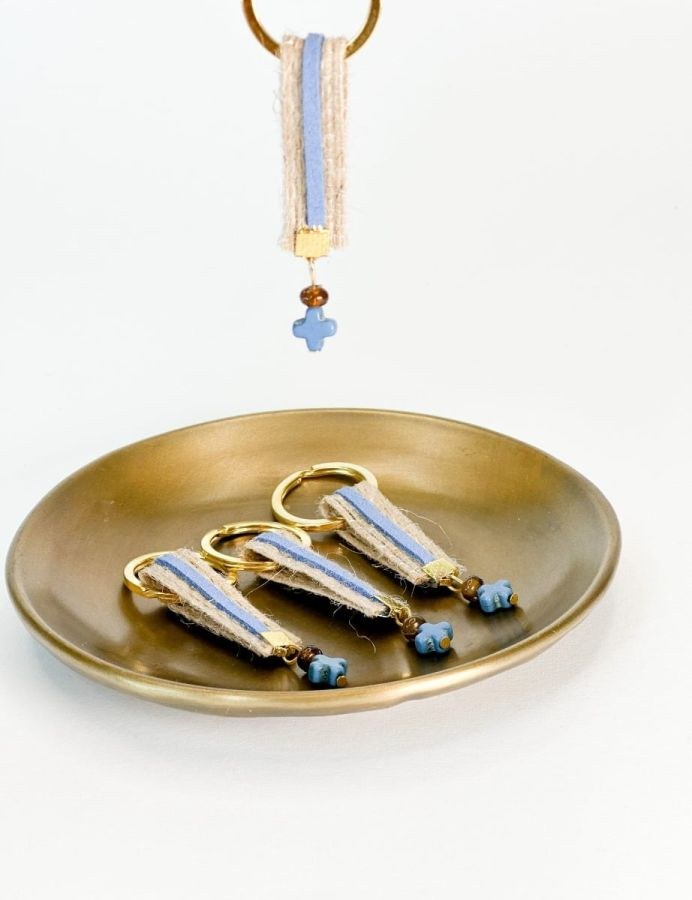 Μαρτυρικό μπρελόκ με μπλε σταυρό,καφέ χάντρα,λινάτσα και μπλε σουέτ λεπτομέρεια. Οι φωτογραφίες έχουν υποστεί επεξεργασία, ίσως να διαφέρουν λίγο τα χρώματα στην πραγματικότητα.