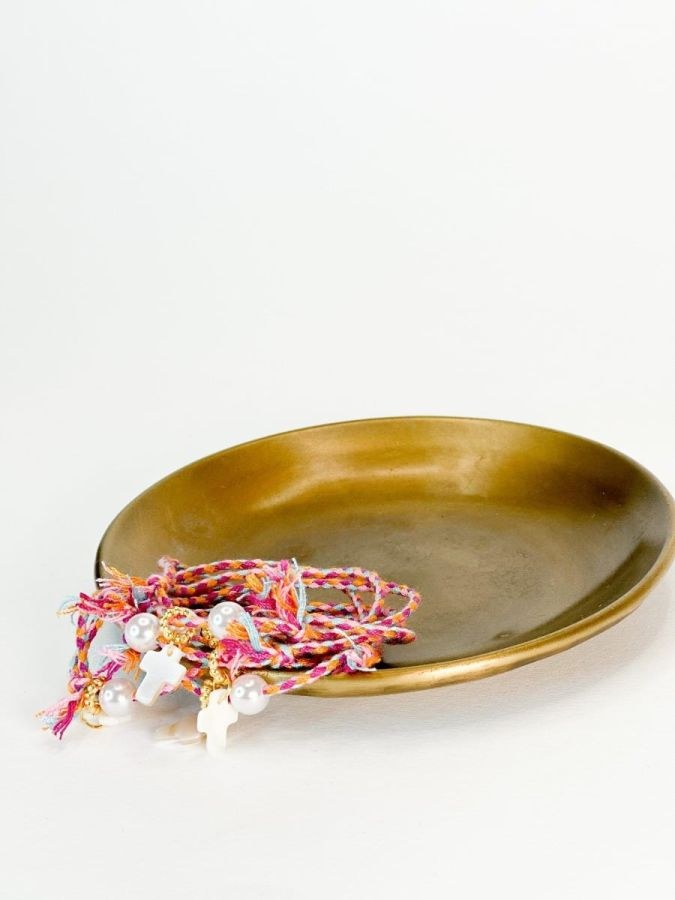 Μαρτυρικό βραχιόλι με κορδόνι σε ροζ,μωβ,πορτοκαλί,μπλέ απόχρωση,πέρλα και σταυρό.