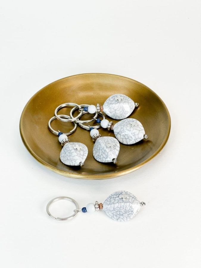 Μαρτυρικό μπρελόκ με γκρί χάντρα,μαύρη miyuki,καφέ χάντρα,σταυρό και ροδέλα σε ασημί απόχρωση καθώς και πέτρα ακρυλική με νερά. Οι φωτογραφίες έχουν υποστεί επεξεργασία, ίσως να διαφέρουν λίγο τα χρώματα στην πραγματικότητα.