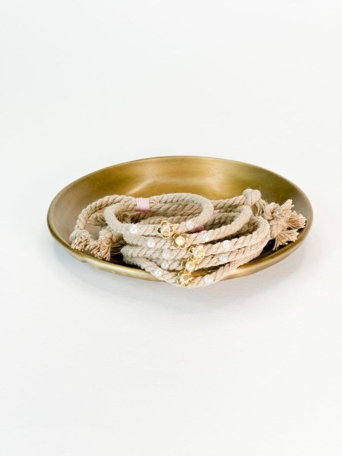 Μαρτυρικό βραχιόλι με μπεζ κορδόνι,ροζ δέσιμο,σταυρό και περλίτσες.