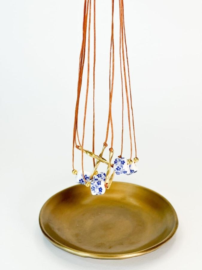 Μαρτυρικό κολιέ με κερωμένο κορδόνι,σταυρό και πορσελάνινη χάντρα φλοράλ. Οι φωτογραφίες έχουν υποστεί επεξεργασία,ίσως να διαφέρουν λίγο τα χρώματα στην πραγματικότητα.