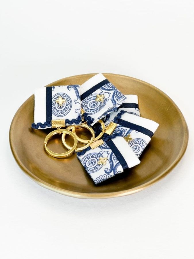 Μαρτυρικό μπρελόκ με σταυρό,ύφασμα σε μπλέ και λευκή απόχρωση.Οι φωτογραφίες έχουν υποστεί επεξεργασία,ίσως να διαφέρουν λίγο τα χρώματα στην πραγματικότητα.