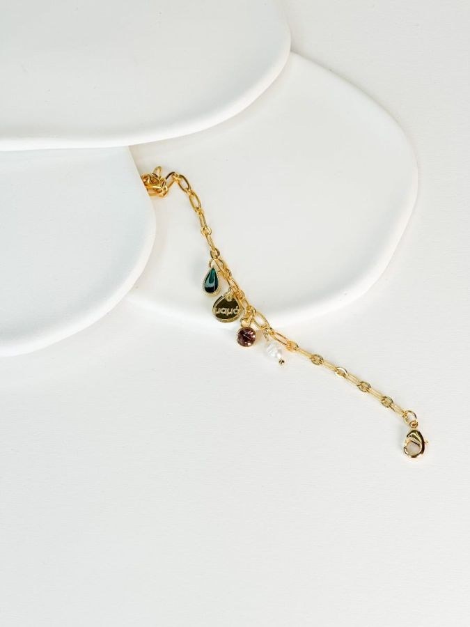 Βραχιολάκι για την μαμά και την νονά με αλυσίδα,λαδί δάκρυ και σβαρόφσκι.