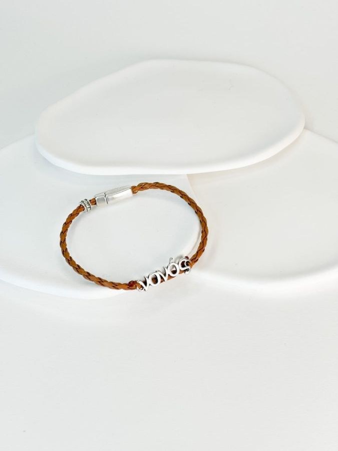 Βραχιολάκι με καφέ κορδόνι πλεξούδα για τον μπαμπά και τον νονό.