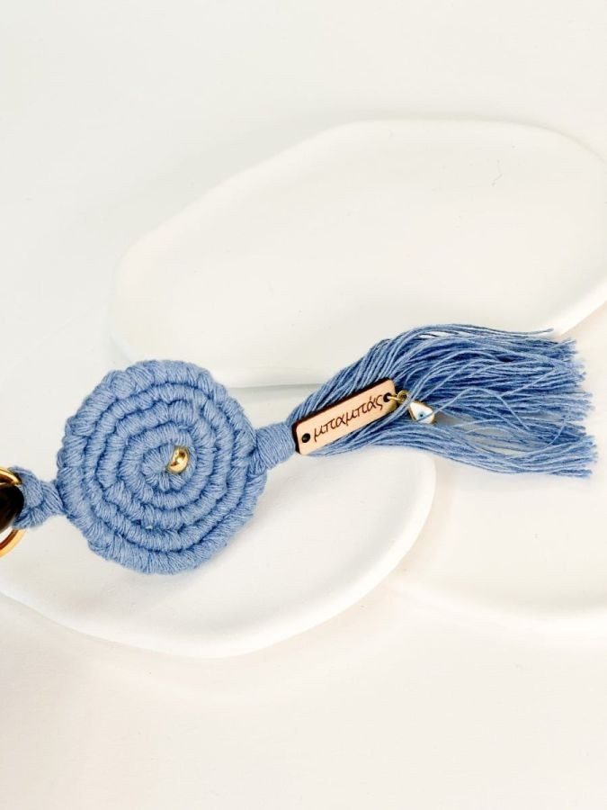 Μακραμέ μπρελόκ σε μπλε απόχρωση για τον μπαμπά, τον νονό, τον παππού, τον αδερφό και τον κουμπάρο. Τα μακραμέ μπρελόκ χρειάζονται περίπου 5 εργάσιμες να ετοιμαστούν.