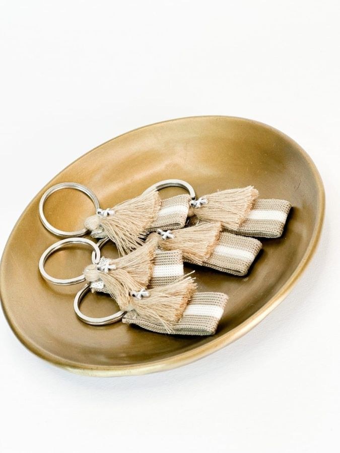 Μαρτυρικό μπρελόκ με σταυρό σε ασημί, με κορδέλα σε απόχρωση μπεζ της άμμου, μπεζ φουντα. Οι φωτογραφίες έχουν υποστεί επεξεργασία,ίσως να διαφέρουν λίγο τα χρώματα στην πραγματικότητα.