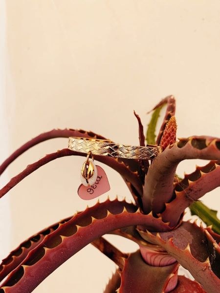 Ασημί βραχιόλι μαμά με γκρί φτερό.