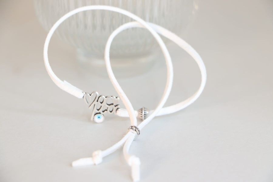 Βραχιόλι με άσπρο κορδόνι και μαμά ασημί.
