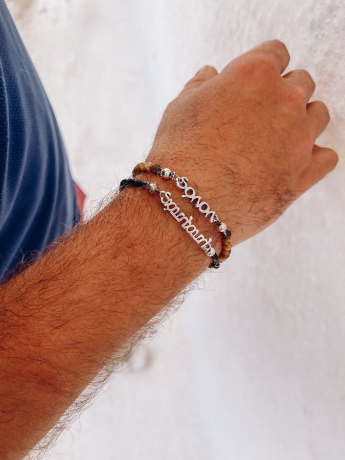 Bραχιολάκι για τον μπαμπά,νονό,παππού με καφέ χάντρες ή μαύρες.