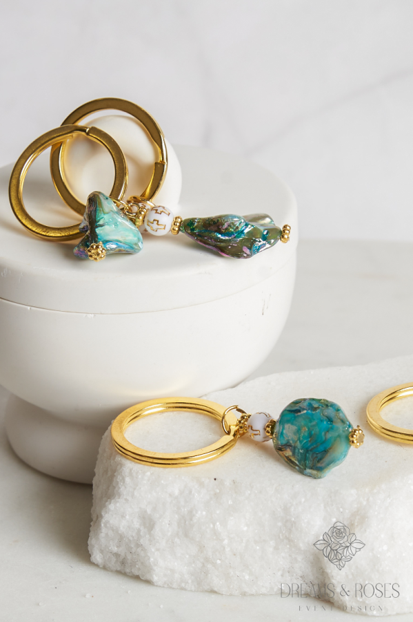 Ξεχωρίστε με μαρτυρικά βάπτισης που θυμίζουν έργο τέχνης. Το μπρελόκ αυτό συνδυάζει έναν ιδιαίτερο ακρυλικό σταυρό με μια εντυπωσιακή πολύμορφη πέτρα σε ιριδίζουσες teal αποχρώσεις. Ένα μοναδικό ενθύμιο που αποπνέει φρεσκάδα και πρωτοτυπία, ιδανικό για να συνοδεύσει τη δική σας ξεχωριστή στιγμή.