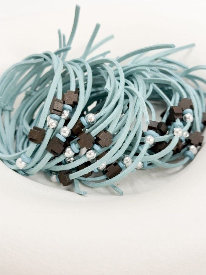 Μαρτυρικό βάπτισης με σιέλ κορδόνι και σκούρο καφέ σταυρό.