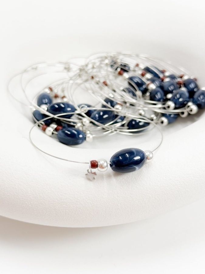 Εντυπωσιακό μαρτυρικό βάπτισης με ασημί βραχιόλι και μπλε διακοσμητική πέτρα.