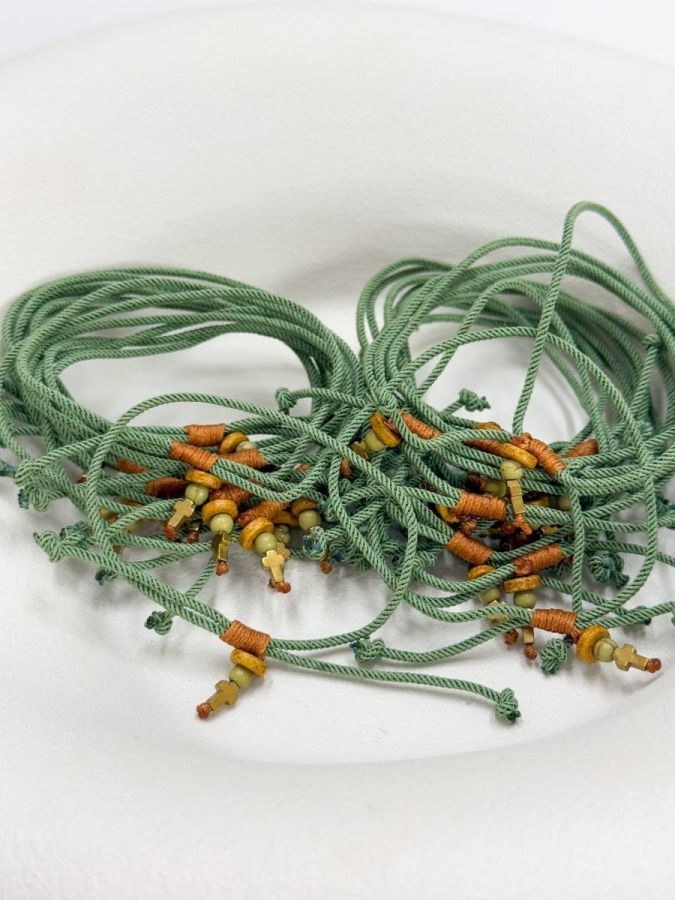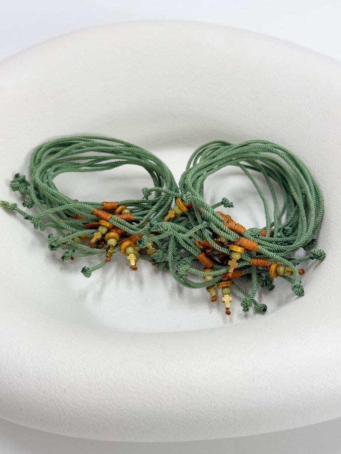 Μαρτυρικό βάπτισης για αγόρι με κορδόνι σε πράσινο χρώμα και καφέ σταυρό.
