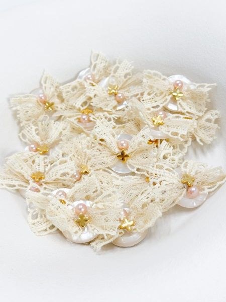 Μαρτυρικό καρφίτσα με επιχρυσωμένο σταυρό ,δαντέλα και πέρλα.