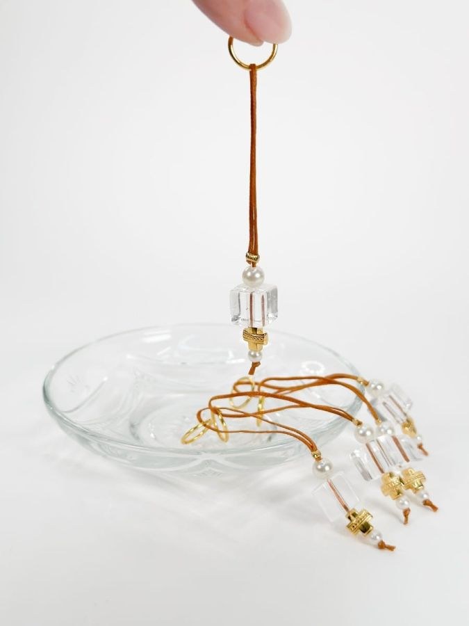 Μαρτυρικό μπρελοκ με ακρυλικό διάφανο κύβο,πέρλα μικρή και επιχρυσωμένο σταυρό.