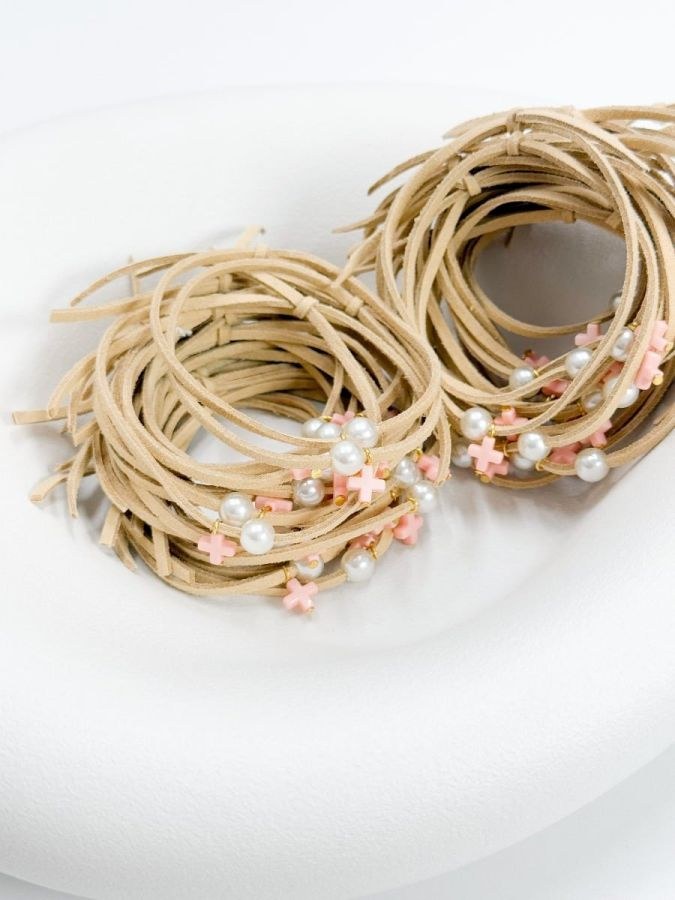 Μαρτυρικό βραχιόλι με πλαστικό σταυρό και κορδόνι suede.