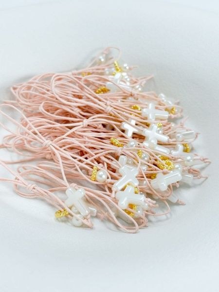 Μαρτυρικό πέτο με περλε σταυρό, χρυσή ροδέλα, πέρλα και suede κορδόνι.