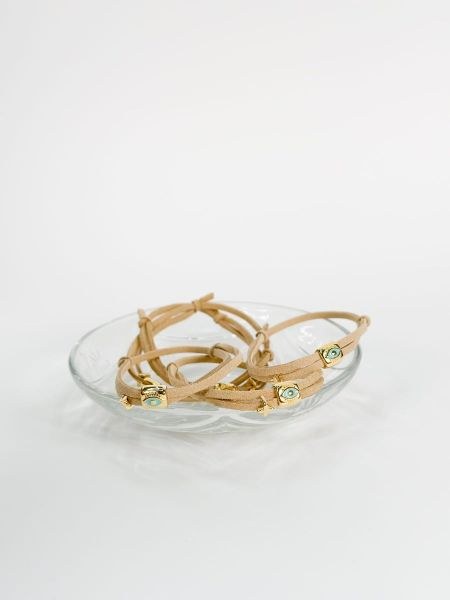Μαρτυρικό βραχιόλι με μπεζ σουετ,μοτιφ επιχρυσωμένο μάτι και σταυρό.