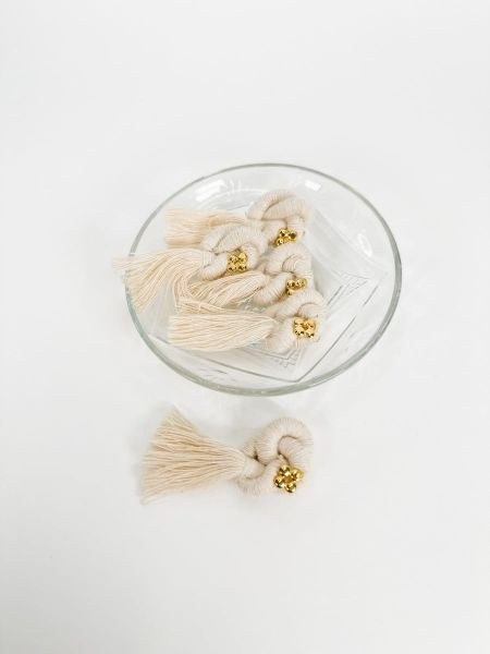 Μαρτυρικό πέτο με εκρού κορδόνι σε σχήμα κόμπου με επιχρυσωμένο σταυρό.
