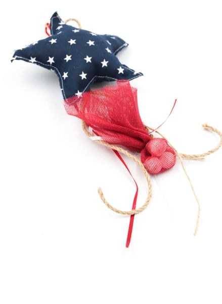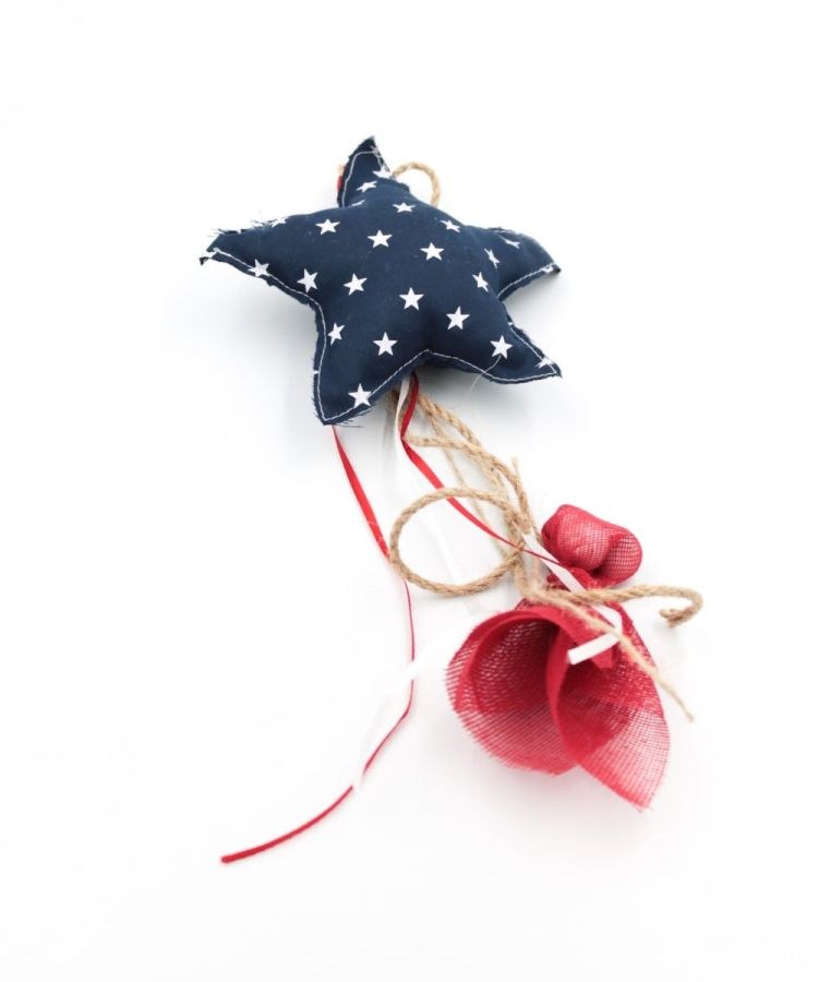 Κρεμαστή μπομπονιέρα βάπτισης μαξιλαράκι με μπλε αστέρι.