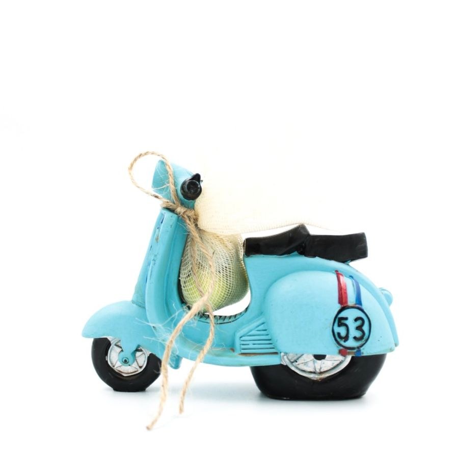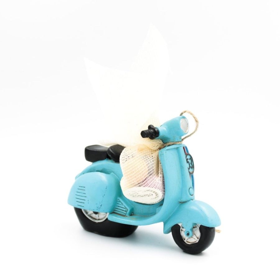 Μπομπονιέρα βάπτισης κεραμική βέσπα σε σιέλ χρώμα.
