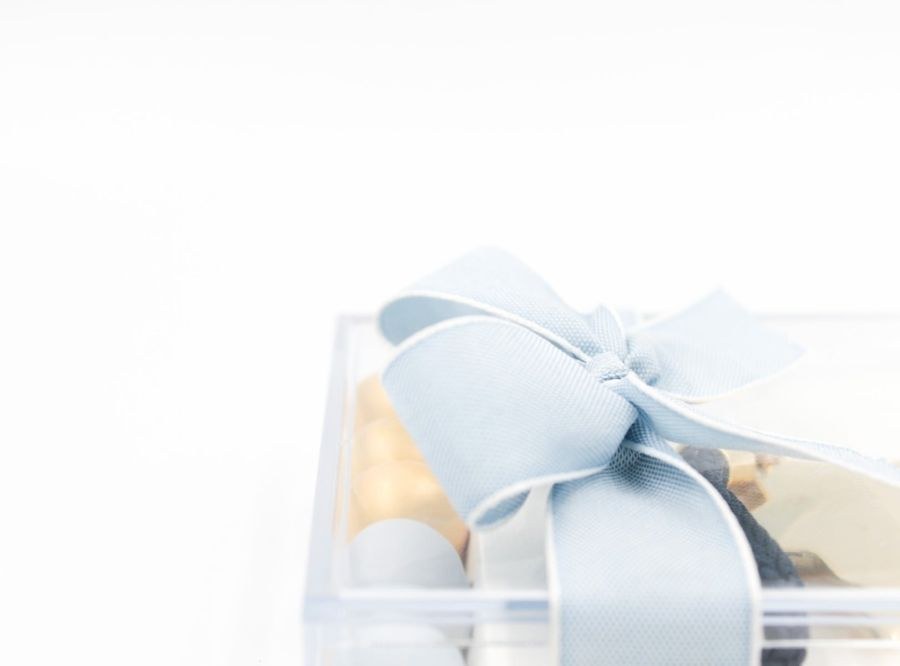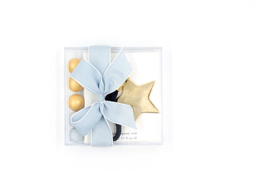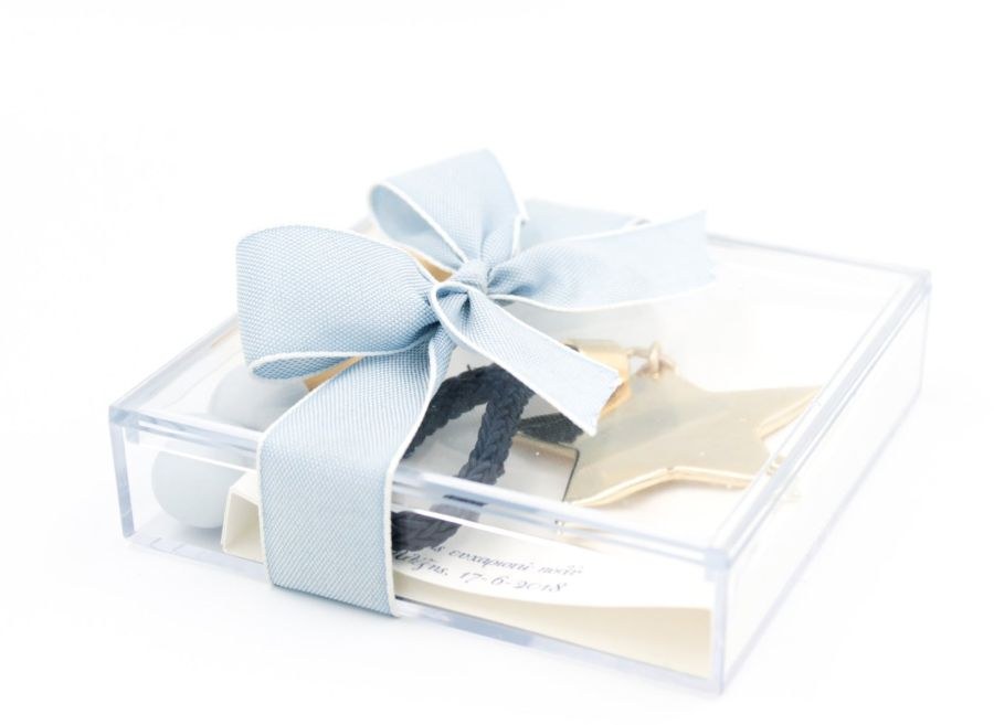 Κουτί plexiglass 10 x 10 x 2 με εσωτερικό καρτελάκι με εκτύπωση και μπρελόκ χρυσό αστέρι.