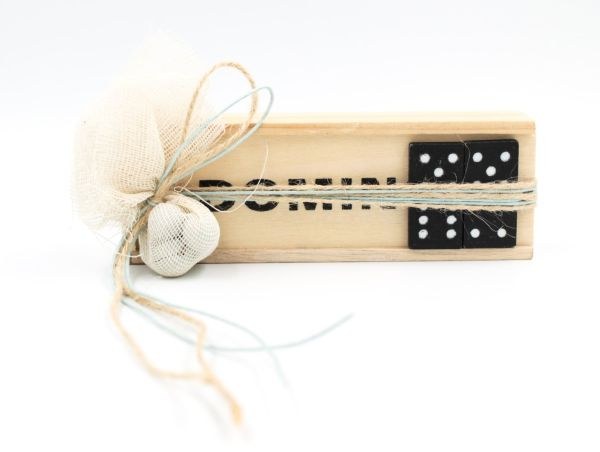 Μπομπονιέρα βάπτισης ξύλινο παιχνίδι domino.