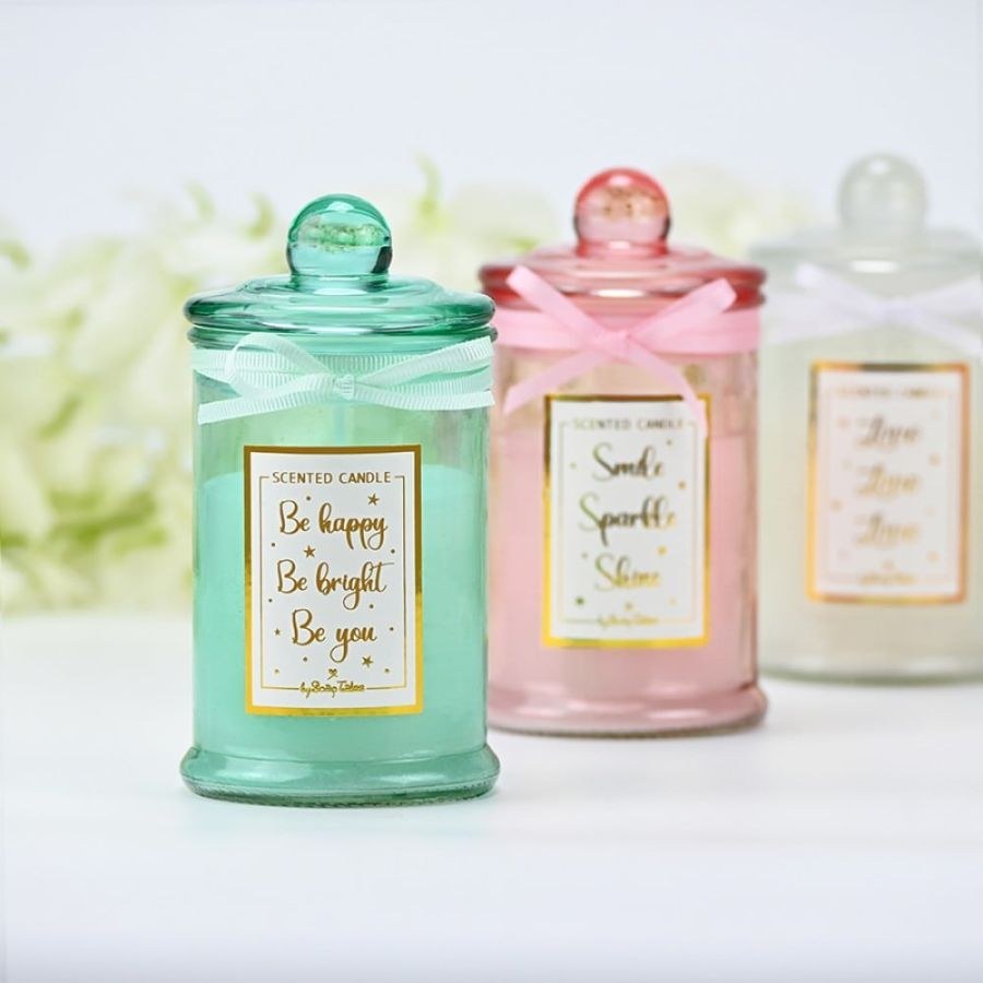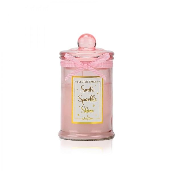 Μπομπονιέρα βάπτισης κερί ψηλό γυάλινο ροζ sun flower