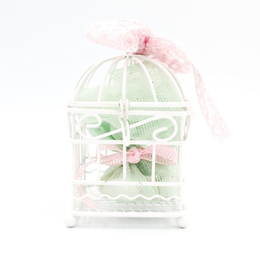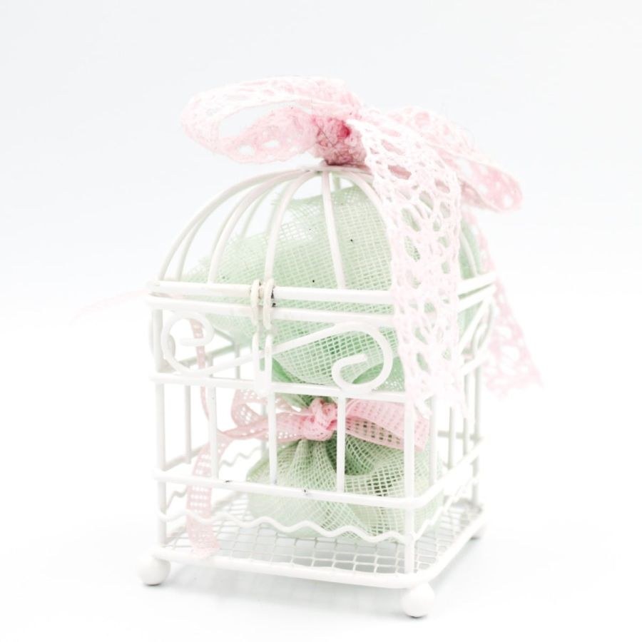 Μπομπονιέρά βάπτισης κλουβάκι λευκό μεταλλικό.