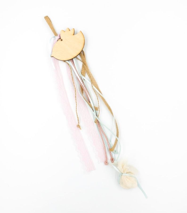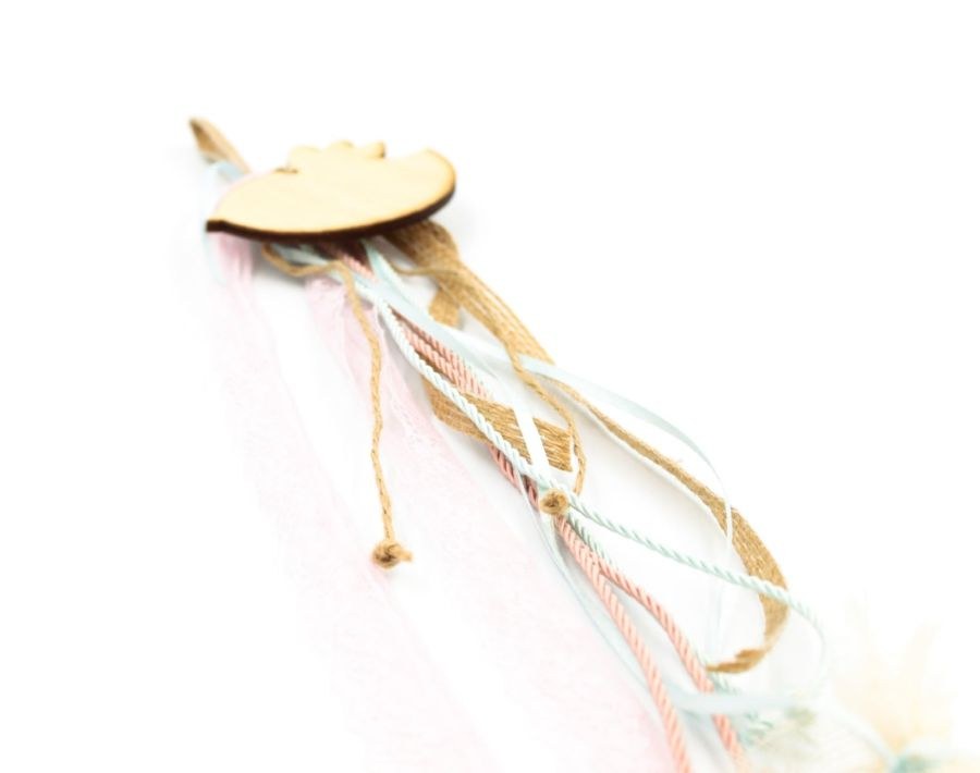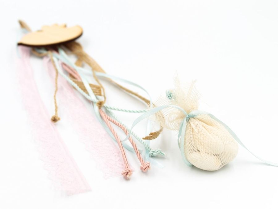 Μπομπονιέρα βάπτισης κρεμαστή με ξύλινο πουλάκι.