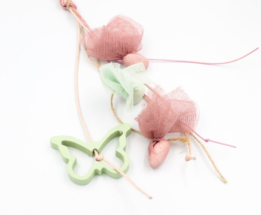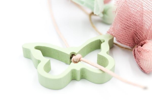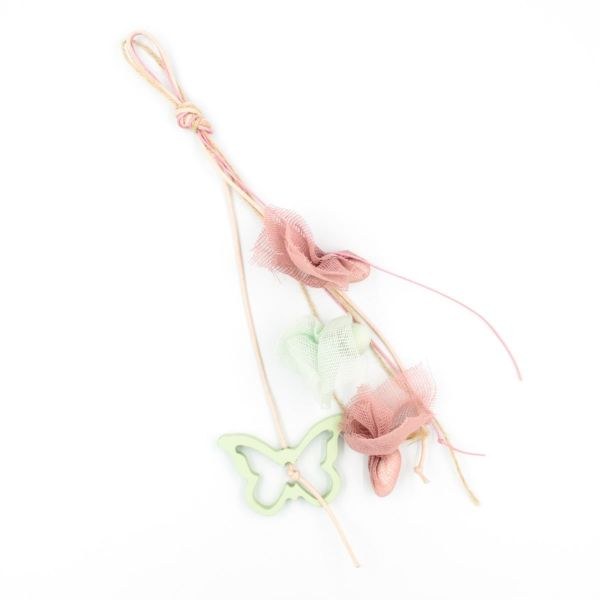 Κρεμαστή μπομπονιέρα βάπτισης με βεραμάν ξύλινες πεταλούδες.