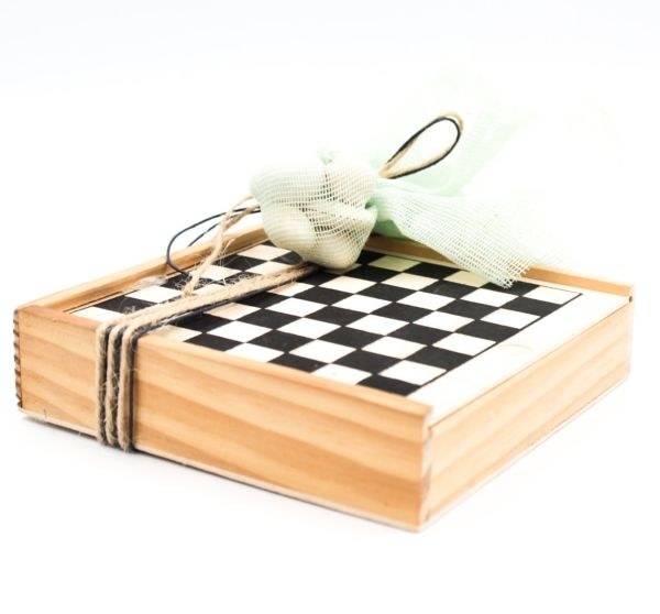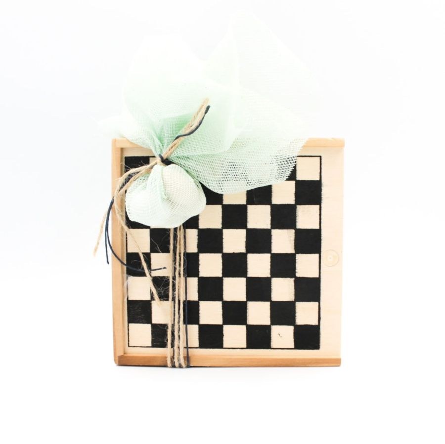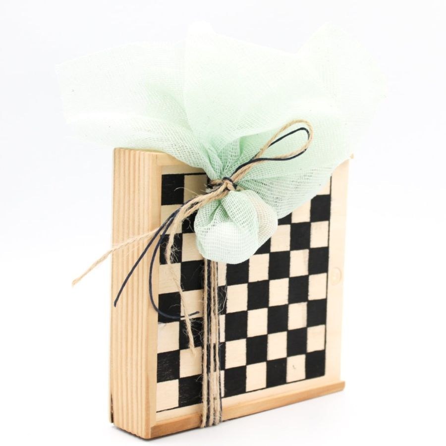 Μπομπονιέρα βάπτισης ξύλινο παιχνίδι σκάκι.