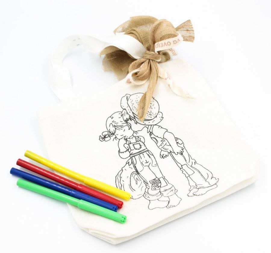 Μπομπονιέρα βάπτισης τσαντάκι για ζωγραφική με μαρκαδόρους.
