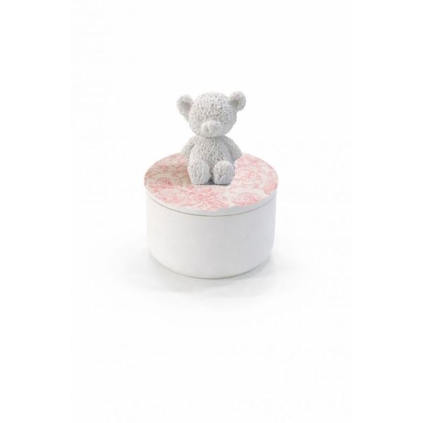 Αυτή η σύνθεση αποτελεί μία από τις πιο κομψές μπομπονιέρες βάπτισης για κορίτσι, καθώς η διπλή της ιδιότητα ως διακοσμητικό αντικείμενο και ως αποθηκευτικός χώρος για κοσμήματα ή μικροαντικείμενα της προσδίδει διαχρονική αξία. Η προσοχή στη λεπτομέρεια, από την εκτύπωση του καπακιού μέχρι την ανάγλυφη μορφή του αρκούδου, την κατατάσσει στις πιο πρωτότυπες μπομπονιέρες βάπτισης, ιδανική για γονείς που επιθυμούν να προσφέρουν ένα δώρο με "προσωπικότητα" και υψηλή αισθητική. Είναι μια επιλογή που οι καλεσμένοι σας θα εκτιμήσουν ιδιαίτερα, αφού πρόκειται για ένα ποιοτικό αντικείμενο που ξεφεύγει από τα συνηθισμένα.