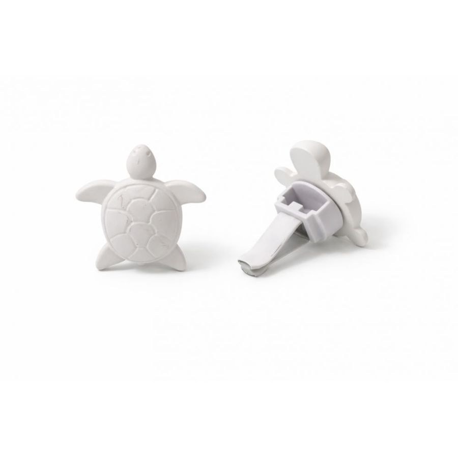 Σχεδιαστικά, το προϊόν διακρίνεται για την καθαρότητα και τη minimal αισθητική του, καθώς είναι φιλοτεχνημένο εξ ολοκλήρου σε λευκή ματ απόχρωση. Η ανάγλυφη λεπτομέρεια στο καβούκι της χελώνας προσδίδει μια ρεαλιστική αλλά και καλλιτεχνική πινελιά, ενώ το στιβαρό υλικό του εγγυάται τη σταθερότητα και την αντοχή στον χρόνο. Στο πίσω μέρος, το αντικείμενο διαθέτει έναν ειδικά σχεδιασμένο μηχανισμό κλιπ, ο οποίος εφαρμόζει με ασφάλεια στους αεραγωγούς του αυτοκινήτου, μετατρέποντας το διακοσμητικό σε ένα απόλυτα χρηστικό αξεσουάρ που διαχέει διακριτικά το άρωμα της επιλογής σας.
