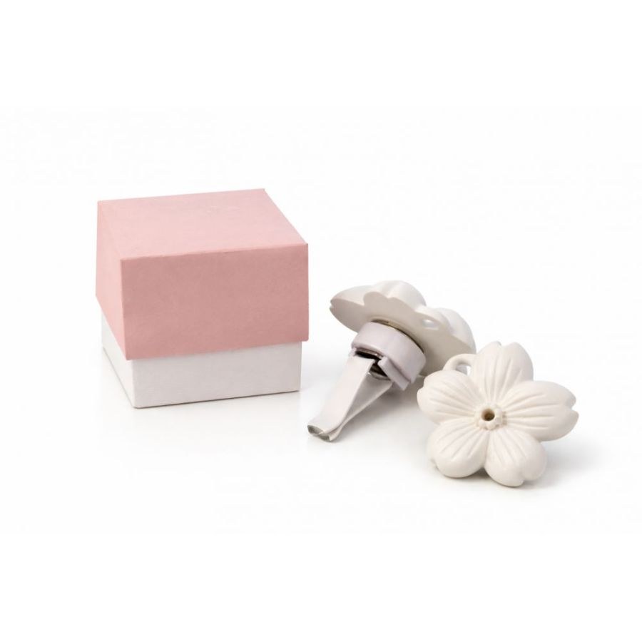 Η κατασκευή του προϊόντος βασίζεται στην υψηλή ποιότητα του λευκού κεραμικού, το οποίο είναι φιλοτεχνημένο με τέτοιο τρόπο ώστε να αποδίδει την κίνηση και τη ζωντάνια ενός αληθινού λουλουδιού. Οι ανάγλυφες γραμμές στα πέταλα και η λεπτομέρεια στο κέντρο του άνθους προσδίδουν μια ρεαλιστική αλλά και minimal αισθητική που ταιριάζει σε κάθε γούστο. Στο πίσω μέρος, το αντικείμενο διαθέτει έναν στιβαρό κλιπ μηχανισμό σε λευκό χρώμα, ο οποίος εφαρμόζει με ασφάλεια στους αεραγωγούς του οχήματος. Η παρουσίαση ολοκληρώνεται με ένα premium τετράγωνο κουτί, που συνδυάζει τη λευκή βάση με ανάγλυφη υφή και ένα καπάκι σε απαλή παστέλ ροζ απόχρωση, δημιουργώντας ένα σύνολο που αποπνέει κομψότητα και καθαρότητα.