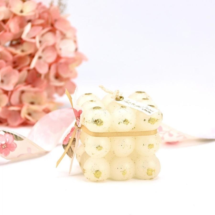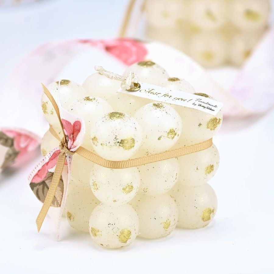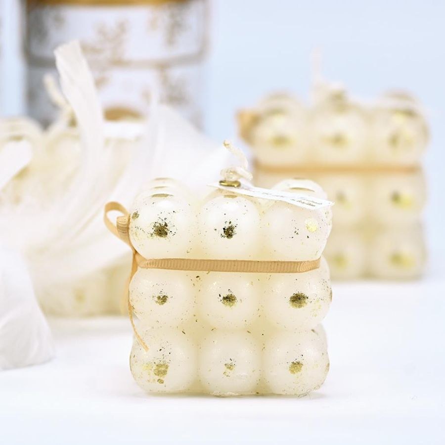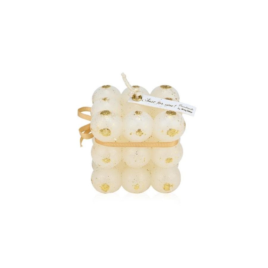 Κερί bubble λευκό με φύλλα χρυσού 160gr 6.5 x 6.5 x 5.5εκ ύψος
