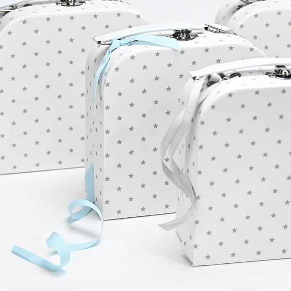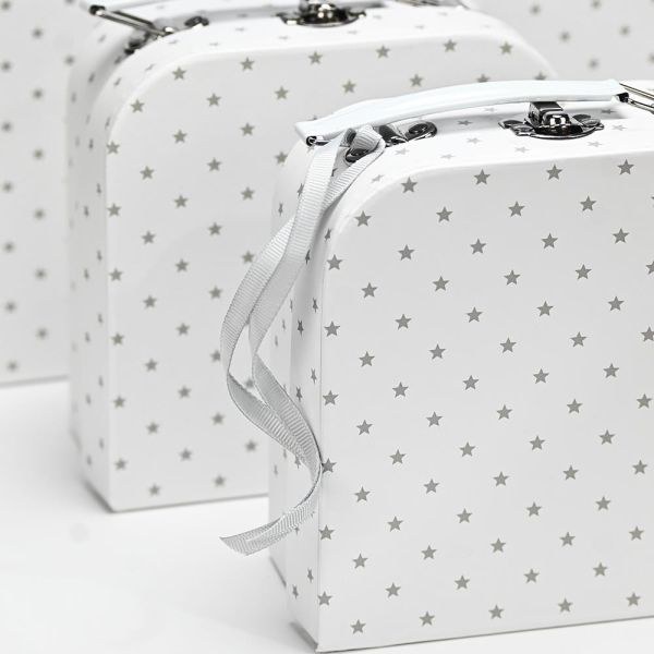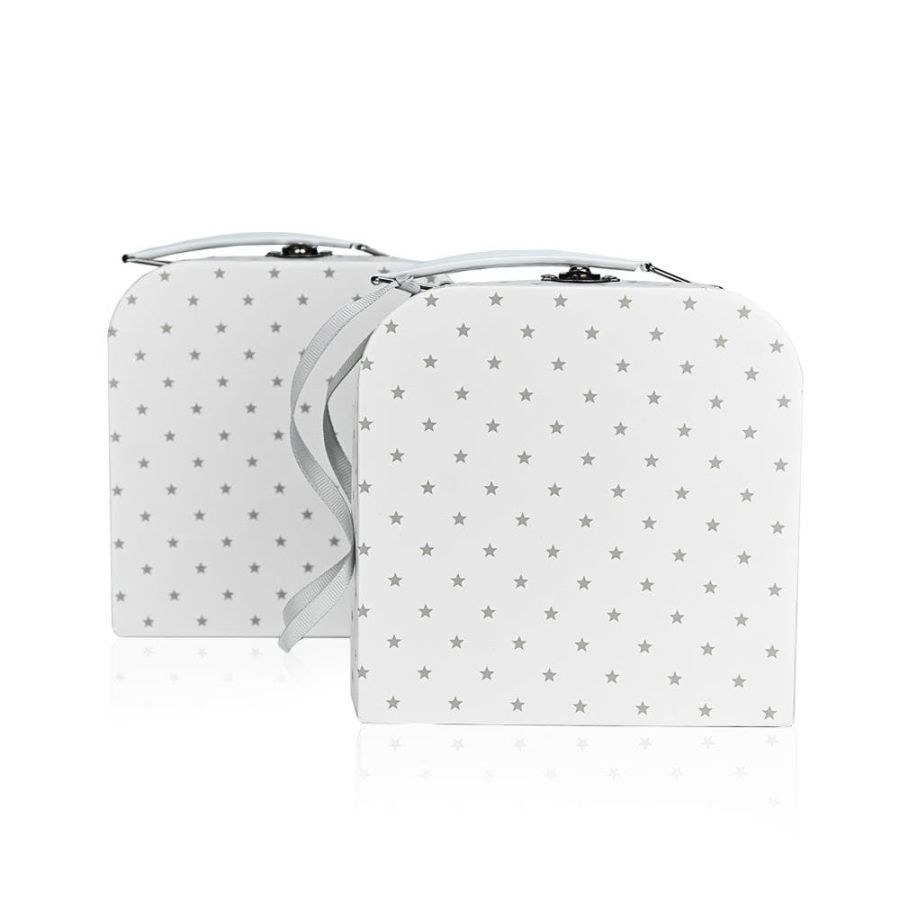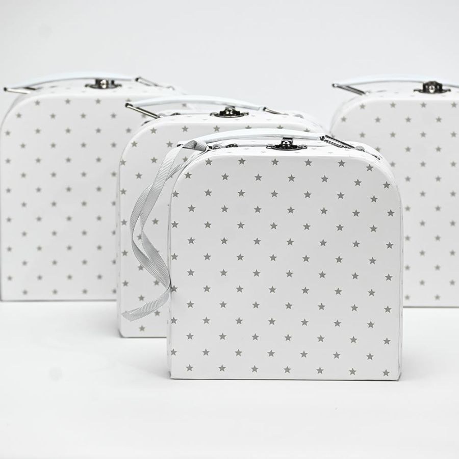 Βαλιτσάκι λευκό με γκρι αστεράκια. Διάσταση 15 x 15 x 7 εκ.