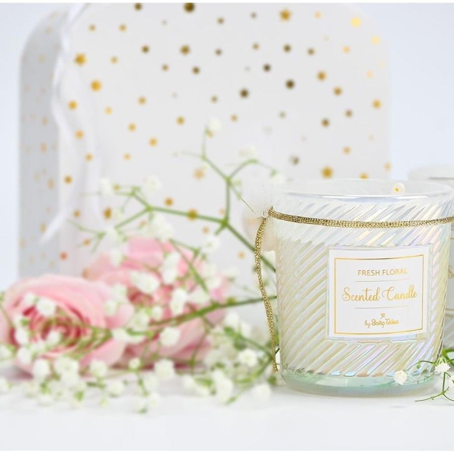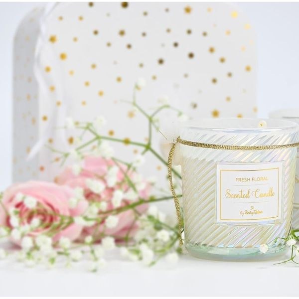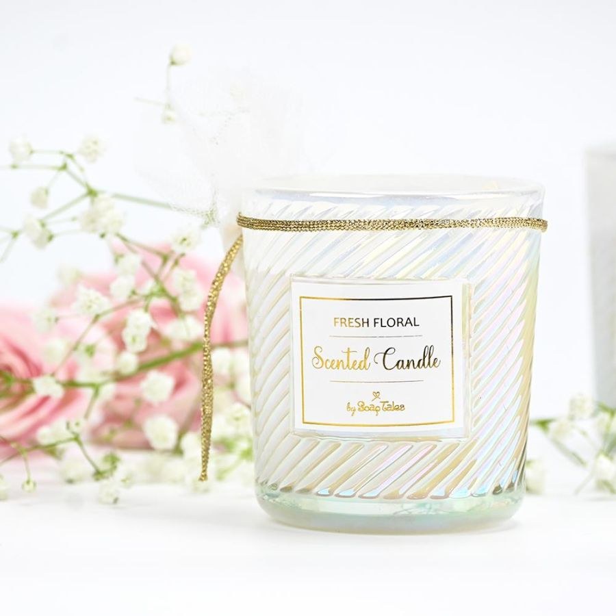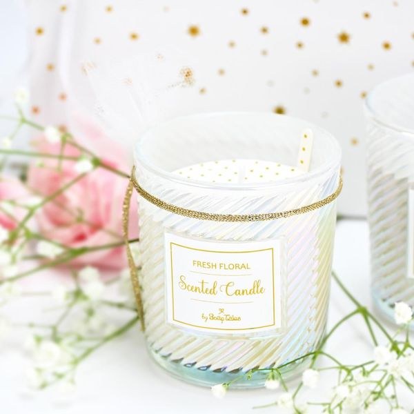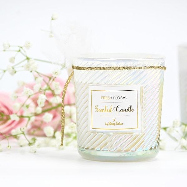 Κερί λευκό μέσα σε ποτήρι με ιριδίζουσα απόχρωση, white glow 120γρ 7.3x 6.5x 8.2ύψος