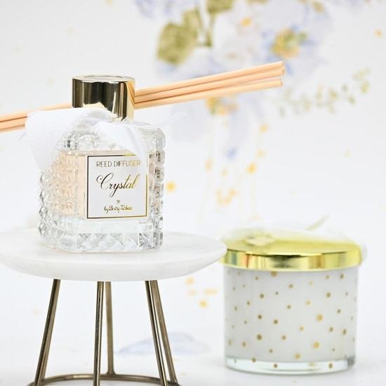 Το αρωματικό χώρου Crystal της SoapTales είναι μια εκλεπτυσμένη πρόταση που συνδυάζει καθαρότητα, απαλότητα και διακριτική πολυτέλεια. Το γυάλινο μπουκάλι με ανάγλυφη υφή και χρυσό καπάκι χαρίζει μια κομψή παρουσία, ιδανική για elegant διακόσμηση αλλά και για ιδιαίτερες περιστάσεις. Το άρωμά του κινείται σε λουλουδένιες και πουδρένιες νότες, δημιουργώντας μια αίσθηση καθαρού και φωτεινού χώρου. Μια κομψή επιλογή για δώρο, αλλά και μια ξεχωριστή πρόταση για μπομπονιέρα γάμου ή βάπτισης, που θα μείνει ως όμορφη και χρηστική ανάμνηση στον χώρο των καλεσμένων σας.