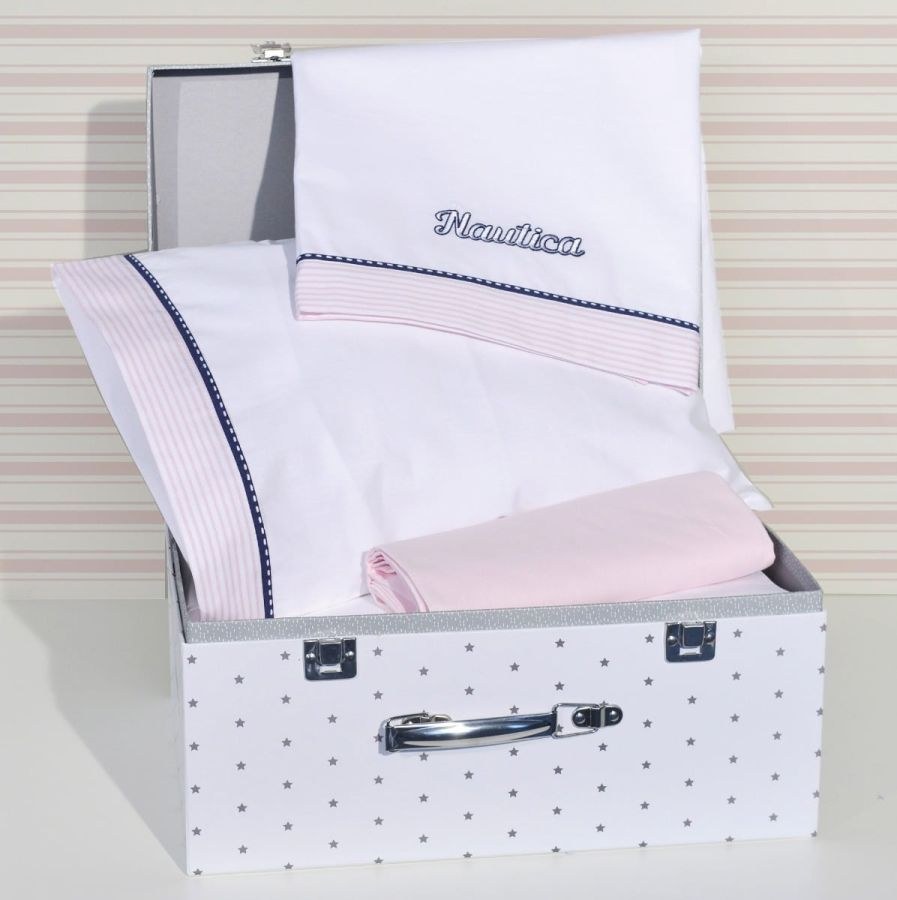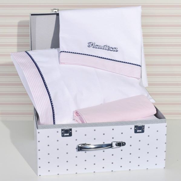 | Nautica Σεντόνια Λίκνου Σετ 3τεμ. Ροζ Ριγέ - Ύφασμα πικέ Ιταλίας |