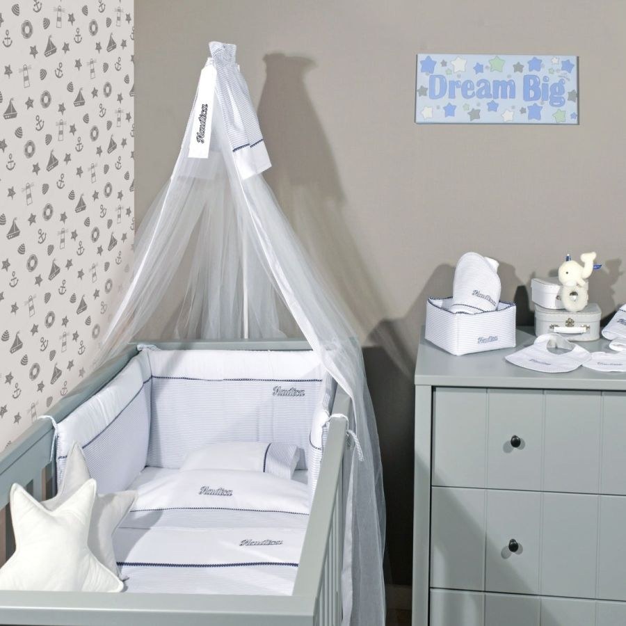 Nautica Σετ προίκας 4 τεμ Γκρι Ριγέ πικέ Ιταλίας , Πάπλωμα,παπλωματοθήκη,πάντα,κουνουπιέρα