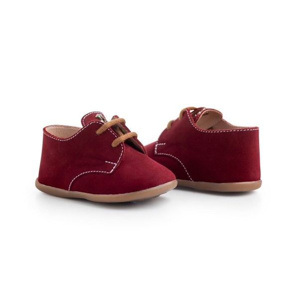 Παπουτσάκι για πρώτα βήματα σε δέρμα καστόρ με δετό κορδόνι, σε χρώμα μπορντό