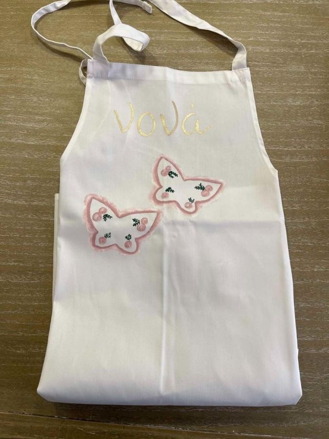 Ποδιά νονού ζωγραφισμένη στο χέρι θεματικά με πεταλούδες σε αποχρώσεις του σάπιου μήλου!