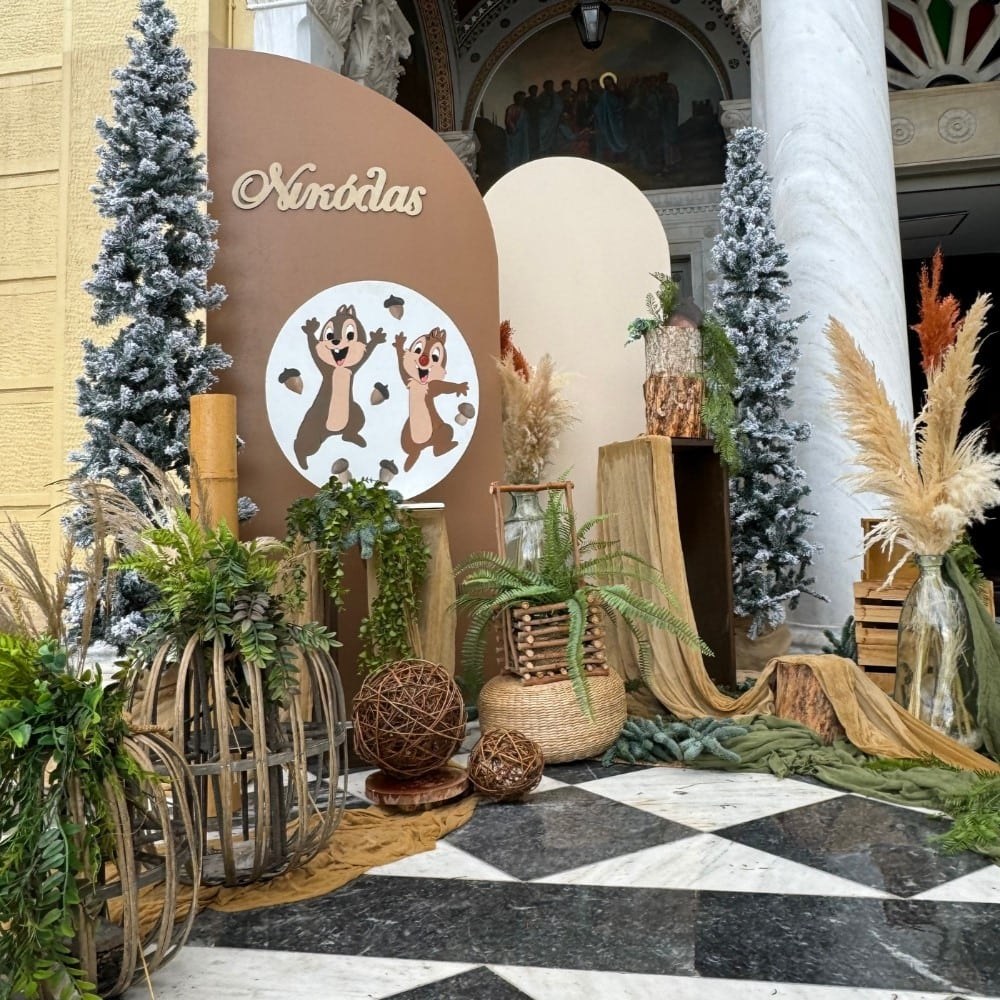 Σήμερα σας μεταφέρουμε στο μαγικό κόσμο της Disney με ένα θέμα βάπτισης που θα είναι στην κορυφή των #trends του 2024, τα σκιουράκια Chip & Dale! ✨ Pampas grass, λινάτσες, υφάσματα, πολύχρωμα πάνελ και boho πινελιές, καθώς και ξύλινες φιγούρες των αγαπημένων χαρακτήρων της #disney, δημιούργησαν μία μοναδική εμπειρία για τους καλεσμένους της βάπτισης του μικρού Νικόλα!