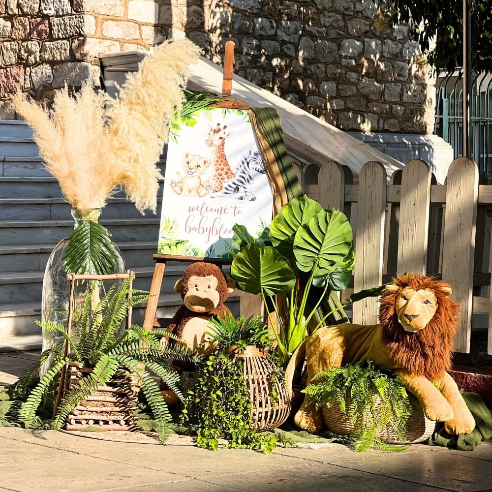 - Στολισμός βάπτισης για αγόρι με θέμα τα ζώα της ζούγκλας