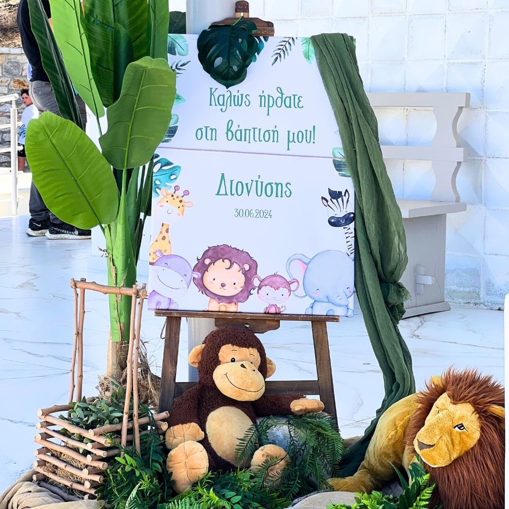 Στολισμός βάπτισης για αγόρι με ζώα της ζούγκλας