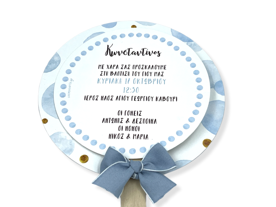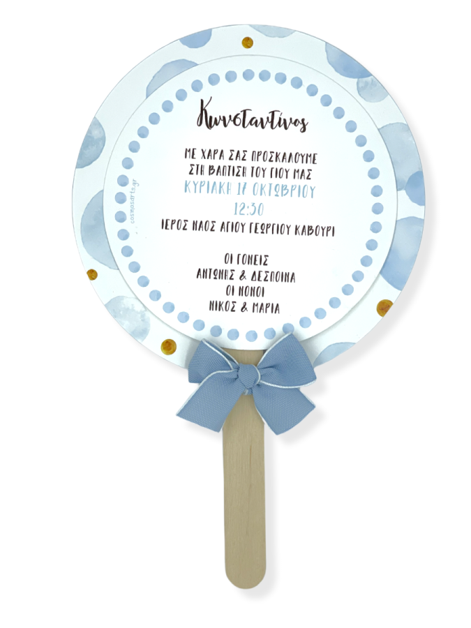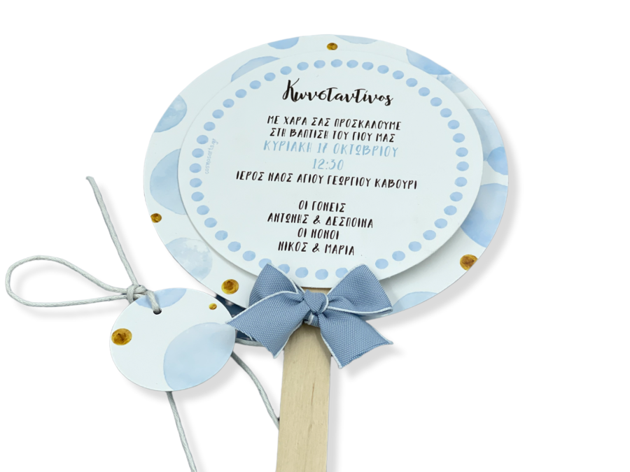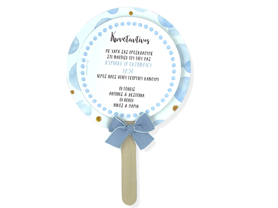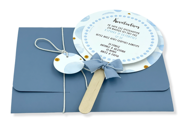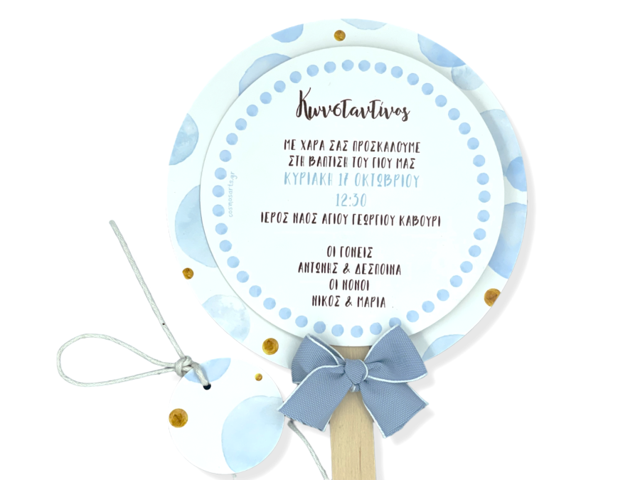 Προσκλητήρια βάπτισης για αγόρι, γλειφιτζούρι σε χρώμα aqua