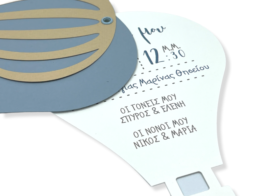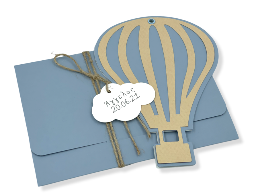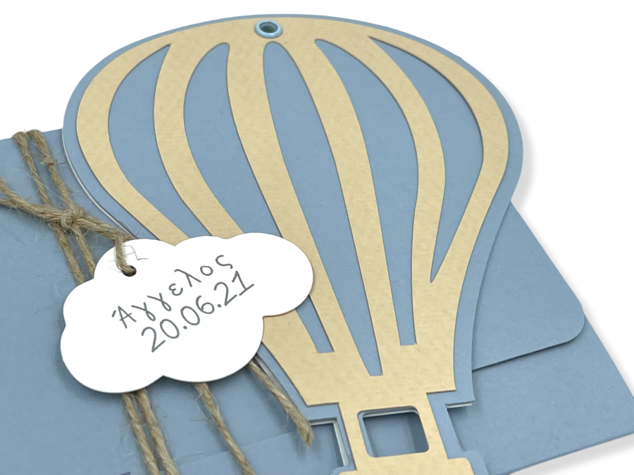 Προσκλητήρια βάπτισης για αγόρι με θέμα το αερόστατο